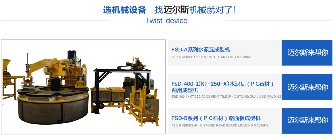 常熟市邁爾斯機(jī)械有限公司是一家集研發(fā)、生產(chǎn)、銷售于一體的建材機(jī)械高科技企業(yè),其前身為2011年注冊創(chuàng)辦的“常熟市虞山鎮(zhèn)豐順達(dá)機(jī)械配件廠”,經(jīng)過多年的努力,于2017年注冊成立“常熟市邁爾斯機(jī)械有限公司”,專業(yè)生產(chǎn)模壓水泥彩瓦機(jī)、P.C石材機(jī)、轉(zhuǎn)盤式成型機(jī)、彩色路面磚機(jī)等綠色建材設(shè)備。公司以市場為龍頭,以技術(shù)為導(dǎo)向,開發(fā)了系列化、標(biāo)準(zhǔn)化的適銷對(duì)路的機(jī)械產(chǎn)品,并且注冊了多項(xiàng)國家專利技術(shù),銷售范圍覆蓋全國,并且出口越南、老撾等東南亞和其它國家。